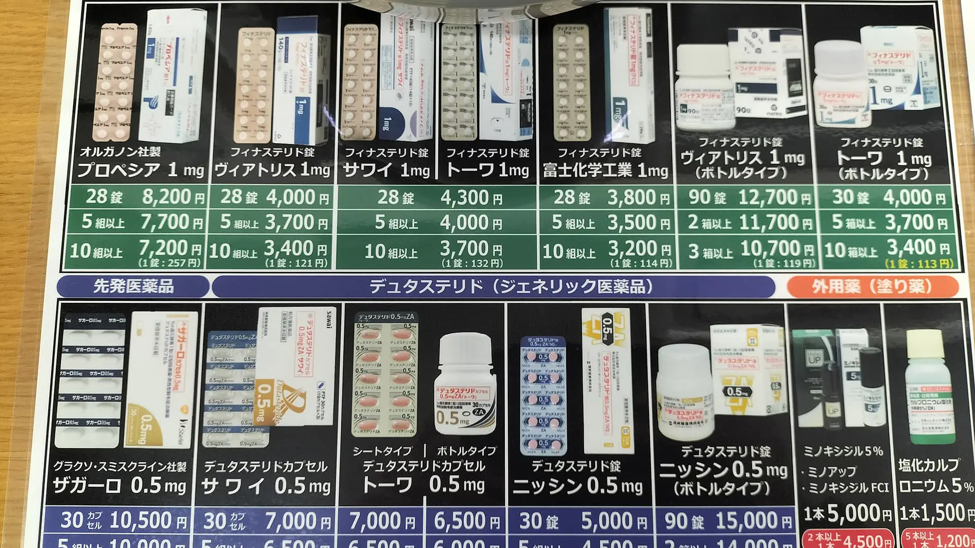 【先発品】 ザガーロ0.5mg 1箱30カプセル:10,500円 ※5箱以上は1箱10,000円 ※10箱以上は1箱9,500円 【後発品】 デュタステリドカプセル 「東和薬品・沢井製薬」 1箱30カプセル:7,000円 ※5箱以上は1箱6,500円 ※10箱以上は1箱6,000円 デュタステリド錠「日新製薬」 1箱30錠:5,000円 ※5箱以上は1箱4,500円 ※10箱以上は1箱4,000円 |