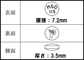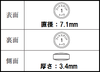 直径「7.1mm」厚さ「3.4mm」質量「150mg」