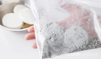 ジップロックに (A) をいれて均等に振り混ぜる。長芋をいれシャカシャカと振って衣をつけ、余分な粉をはたく。