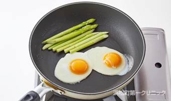 手順3 : 卵とアスパラガスを焼く