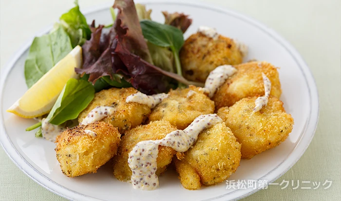 ホタテのバジルフライ マスタードソース