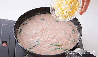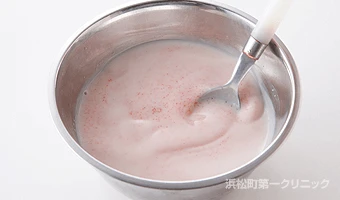 明太子は薄皮を取り除き、だし汁と豆乳を合わせておく。