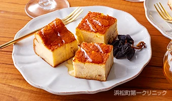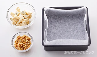 ゴルゴンゾーラとくるみをちりばめた、大人のチーズケーキ。甘いものが苦手な方にもおすすめ。一口大に切ってちょっとずつ、赤ワインと合わせてどうぞ。