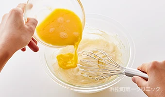 - 卵:1 と 1/2 個生クリーム(36 %):150 ml