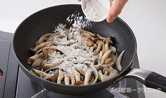 玉ねぎは薄切りに、しめじは小房にわけ、アボカドは一口大に切る。