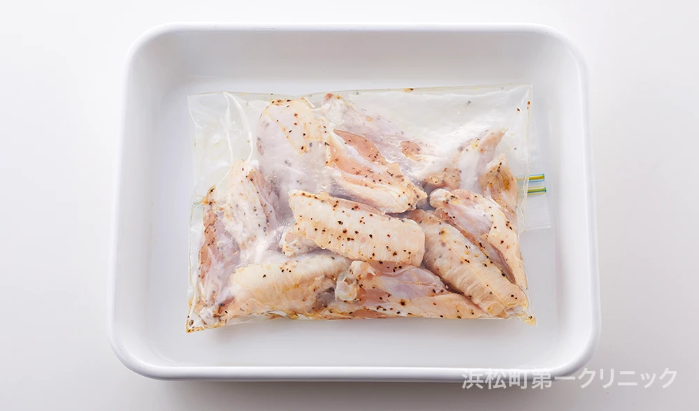 手順1 : 鶏手羽中と調味料を袋に入れてもみ込む