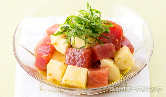セレンが豊富なマグロに、ムコ多糖類が豊富な長芋を合わせてお手軽マリネに。
