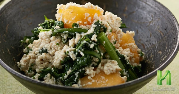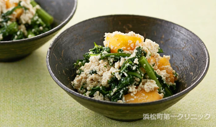 春菊と柿の白和え
