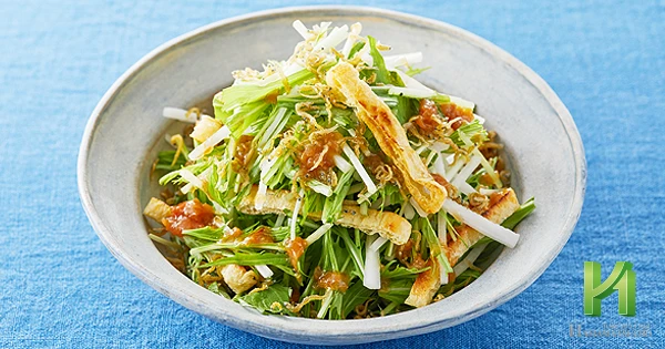 カリカリお揚げとじゃこの梅ドレッシングサラダ