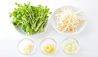 夏バテで食欲が低下している時にも食べやすいさっぱりしつつもパンチが効いたおかず。豆苗ともやしには抗酸化作用のあるビタミンCが豊富に含まれていて、紫外線が強いこの時期には積極的に食べたい野菜です。