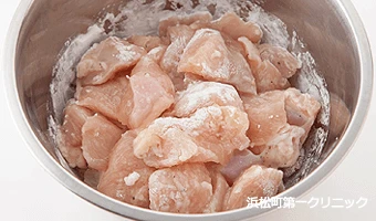 手順1 : 鶏肉に片栗粉をまぶし炒める