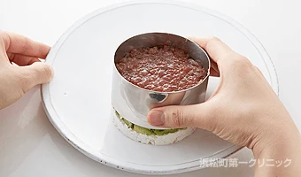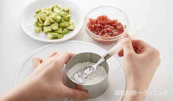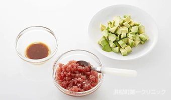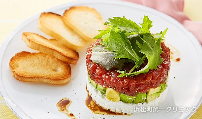 まぐろの赤身にはセレンが多く、アボカドに含まれるビタミン E と一緒に摂ることで、抗酸化力アップ。ひなまつりカラーをイメージした、洋食におすすめのパーティメニューです。