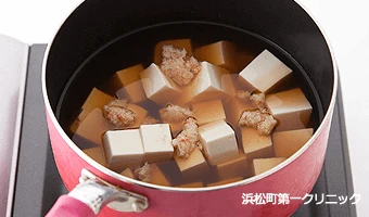 手順1 : 豆腐、かに缶を煮詰める