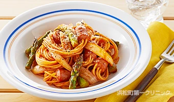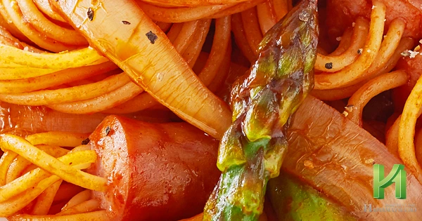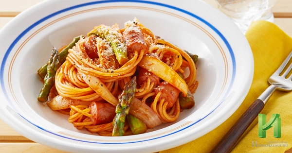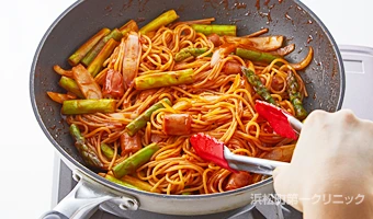 ウインナーとアスパラガスのナポリタン